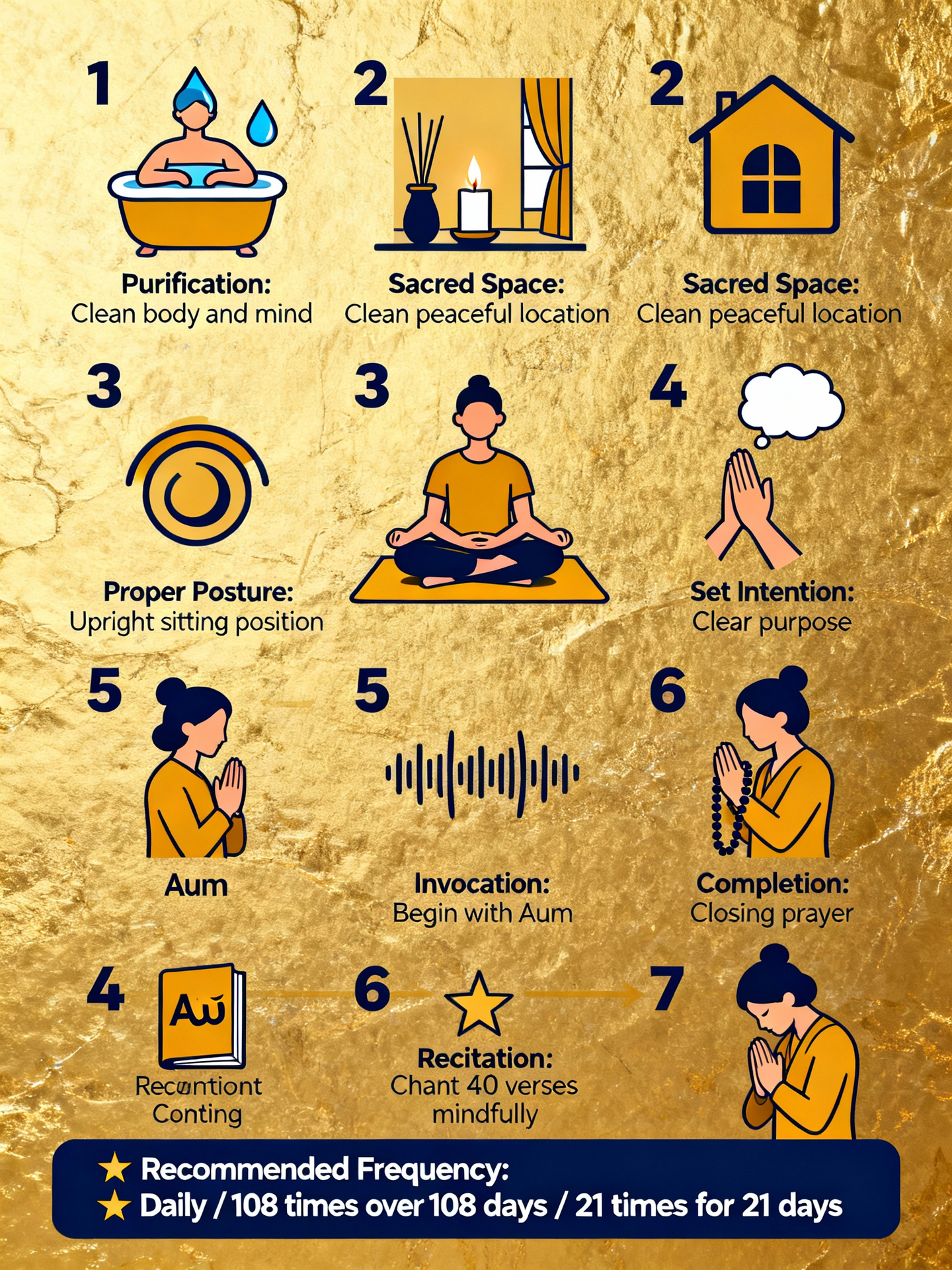 Recitation: Chant all 40 verses clearly and mindfully. Don't rush; maintain proper pronunciation.