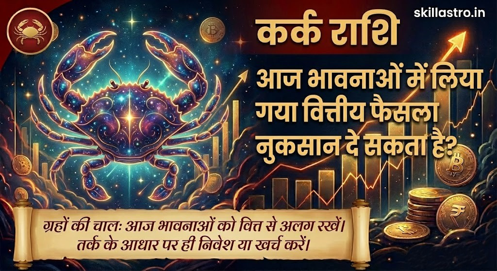 कर्क राशि 27 दिसंबर 2025 को सूर्य आपके सातवें भाव (साझेदारी भाव) में गोचर कर रहा है, जो व्यापारिक संबंध, वैवाहिक सुख और पार्टनरशिप सफलता को मजबूती प्रदान करेगा। कर्क राशि के व्यक्ति का गुण स्वभाव और personality वाले जातकों के लिए यह स्थिति भावनात्मक निर्णय लेने का सुनहरा अवसर है, लेकिन चंद्रमा के कर्क राशि में गोचर से अंतर्ज्ञान और पारिवारिक सलाह को प्राथमिकता देना अनिवार्य है। शनि दसवें भाव में करियर अनुशासन और व्यावसायिक स्थिरता पर जोर दे रहा है, जो आपको जल्दबाजी से बचाने में सहायक होगा। जो लोग "कर्क राशिफल करियर पैसा 27 दिसंबर", "कर्क आज वित्तीय फैसला सही कौन सा", "कर्क राशि 2025 करियर टिप्स निवेश सलाह" या "कर्क दिसंबर पैसों का राशिफल" जैसे कीवर्ड्स सर्च कर रहे हैं, उनके लिए यह दिन भावनात्मक नेतृत्व और पार्टनर आधारित वित्तीय नियोजन का सबसे उपयुक्त समय साबित होगा। कुल मिलाकर सूर्य की ऊर्जा से साझेदारी लाभ मिलेगा, लेकिन शनि की सलाह से दीर्घकालिक प्लानिंग ही सही रास्ता है।