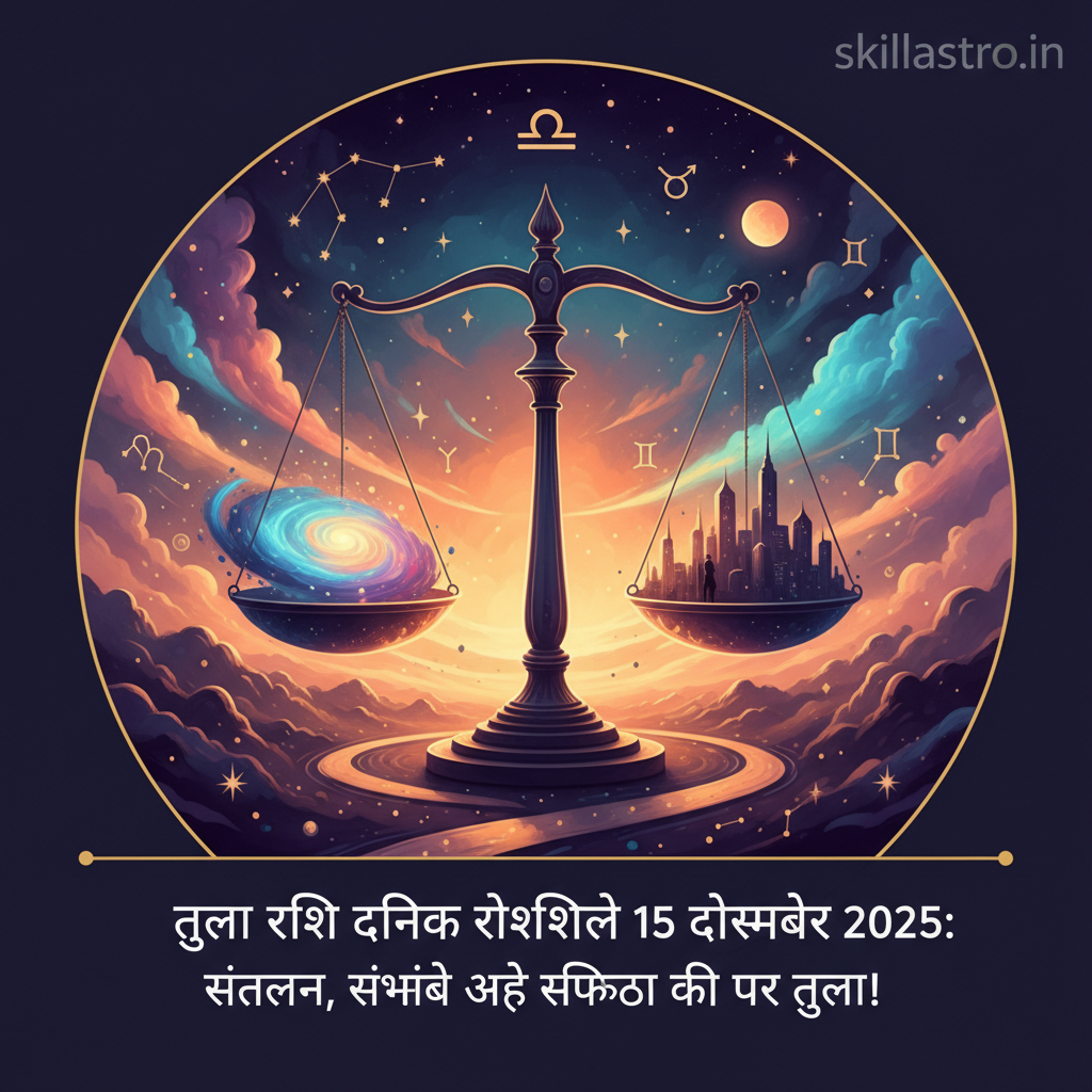 आज 15 दिसंबर 2025 का दिन है और ब्रह्मांडीय ऊर्जाएं हमें हमारे भविष्य की एक झलक देने के लिए तैयार हैं। क्या आपने कभी सोचा है कि आपके दिन की शुरुआत ज्योतिषीय मार्गदर्शन से हो तो वह कितना प्रभावी हो सकता है? हम में से हर कोई अपने जीवन में आने वाली संभावनाओं और चुनौतियों को जानना चाहता है। दैनिक राशिफल न केवल हमें इन संभावनाओं से अवगत कराता है, बल्कि यह हमें यह भी बताता है कि हम कैसे अपनी राह में आने वाली बाधाओं को पार कर सकते हैं। आज, हम विशेष रूप से तुला राशि के जातकों के लिए 15 दिसंबर, 2025 के दैनिक राशिफल पर गहराई से चर्चा करेंगे। तुला राशि, जिसे संतुलन और न्याय की प्रतीक माना जाता है, के लिए आज का दिन मिलाजुला रहने वाला है। यह एक ऐसा दिन है जब आपको अपने सामाजिक कौशल, कूटनीति और निर्णय लेने की क्षमता का उपयोग करना होगा। आइए जानते हैं कि सितारों की चाल आपके लिए क्या संकेत दे रही है और कैसे आप इस दिन को अपने पक्ष में कर सकते हैं। यह विस्तृत मार्गदर्शिका आपको आज के दिन के हर पहलू को समझने में मदद करेगी, चाहे वह आपका करियर हो, वित्त हो, प्रेम संबंध हों, या आपका स्वास्थ्य। अपने दिन को बेहतर बनाने के लिए तैयार हो जाइए!