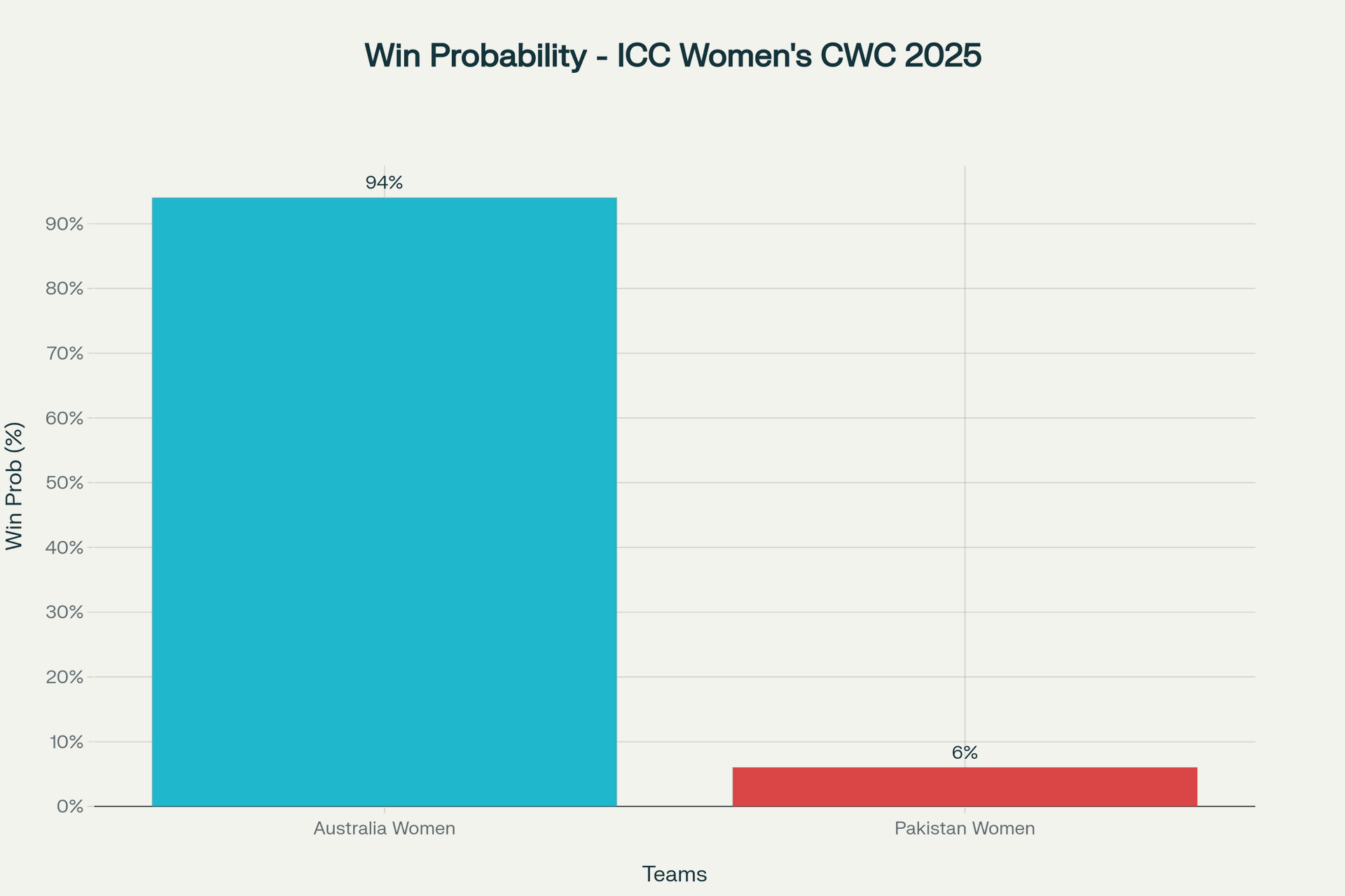A1: Australia Women are the clear favorites with a 94% winning probability due to their strong form and superior experience.