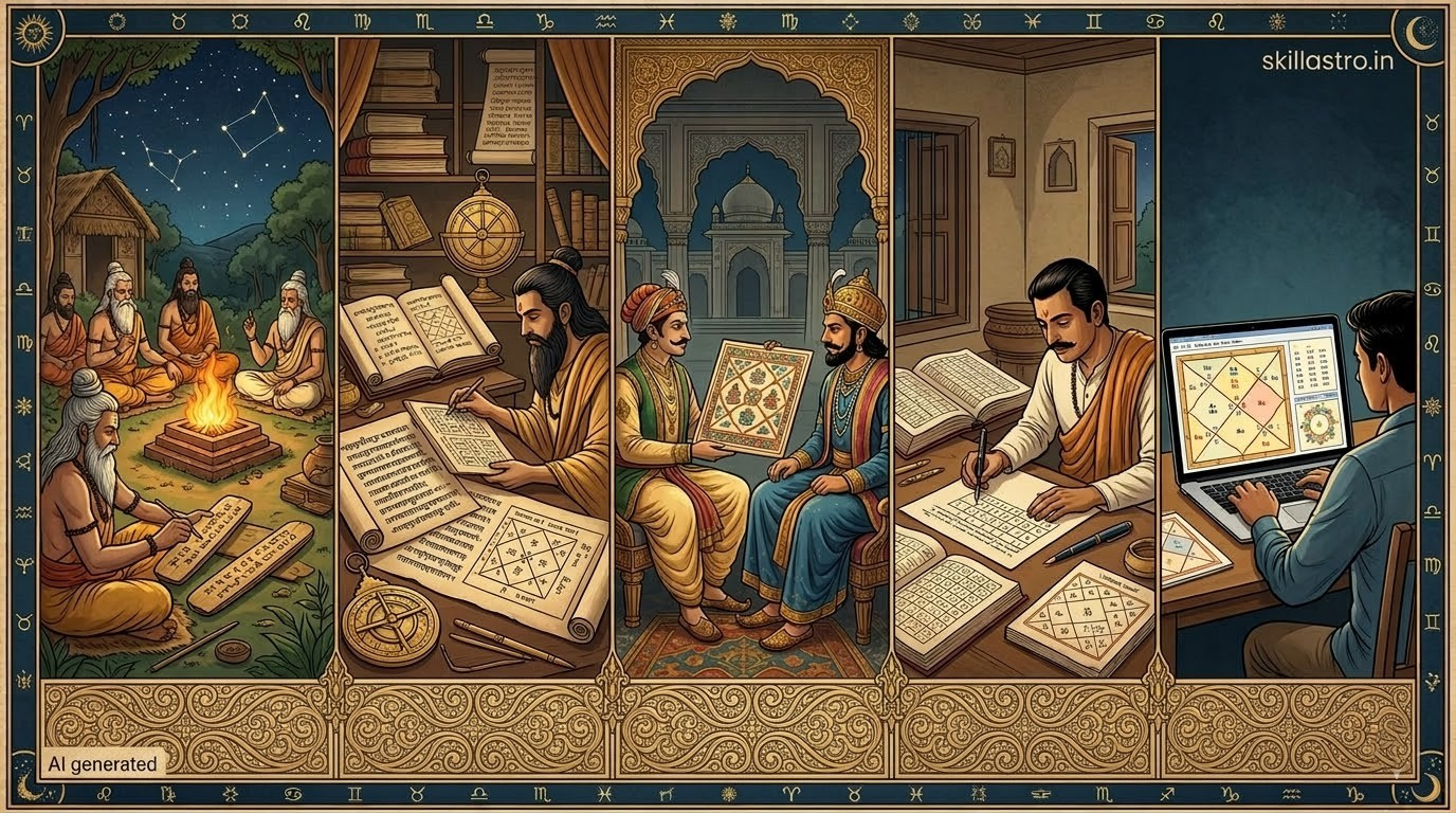 कुंडली का आरंभ कब हुआ? ऋषियों ने कैसे नक्षत्रों और ग्रहों की चाल से मनुष्य के भाग्य को जोड़ा? कुंडली के विकास और इसके ऐतिहासिक रहस्यों की पूरी कहानी यहाँ पढ़ें।