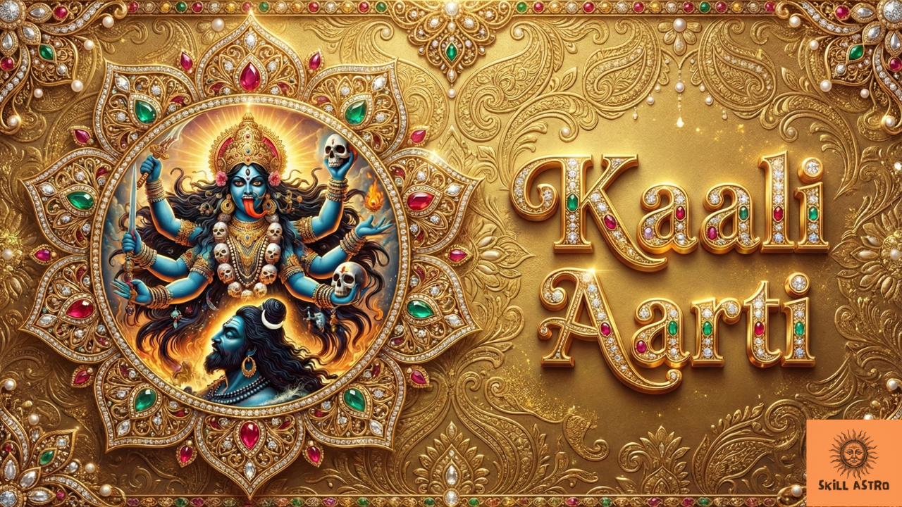 In Hindu religion, Goddess Kali is a powerful form of Goddess Durga. She fights against evil and protects good people. It is believed that worshipping Kali Mata and singing her Aarti removes all problems, pain, and fear. Her Aarti is a special song that praises her strength and asks for her blessings. People pray to her for courage, happiness, and protection from bad things. If we sing her Aarti with love and devotion, she takes away our troubles and gives us strength. Worshipping Kali Mata helps us become strong, brave, and successful in life.